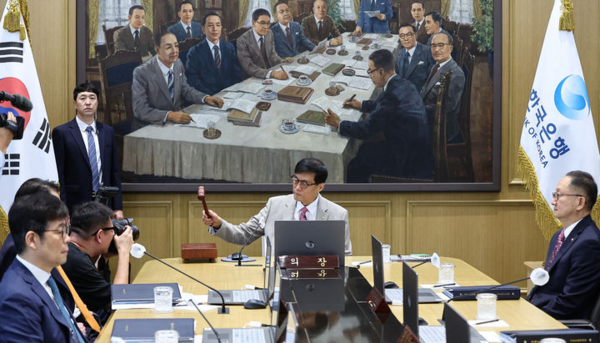 한은 금통위는 10일 오전 서울 중구 한은 본부에서 통화정책방향 회의를 열고 기준금리를 종전과 같은 2.50%로 동결했다.