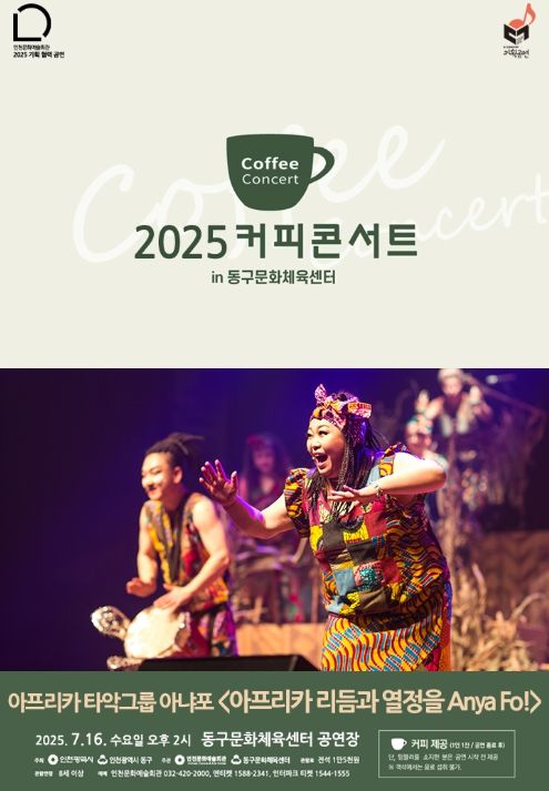 [파이낸셜경제=김영란 기자] 인천 동구문화체육센터는 오는 16일 오후 2시 커피콘서트의 마지막 무대를 선보인다고 밝혔다. 이번 무대는 아프리카 타악그룹 ‘아냐포(Anya Fo)’가 출연해, 관객과 어우러지는 신명 나는 공연이 펼쳐질 예정이다.
