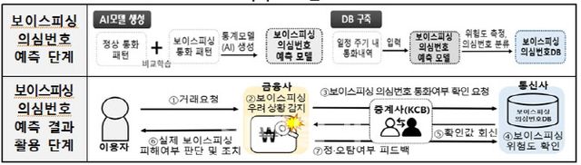 두 통신사는 자사 가입자의 전화 수발신 내역 데이터를 활용하여 보이스피싱 의심번호를 예측하고 이를 금융사의 이상거래 탐지·차단에 이용하는 서비스를 출시하기에 앞서 개보위에 사전적정성 검토를 신청했다. 신청내용을 살펴보면, 먼저 각 통신사는 수사기관 등으로부터 공유받은 보이스피싱 전화번호의 통화·문자 수발신 패턴(통화패턴)을 학습한 인공지능(AI) 모형을 개발하고, 보이스피싱 전화번호와 통화패턴이 극히 유사한 다른 전화번호들을 분류해 ‘보이스피싱 의심번호 데이터베이스(DB)’를 구축하게 된다.