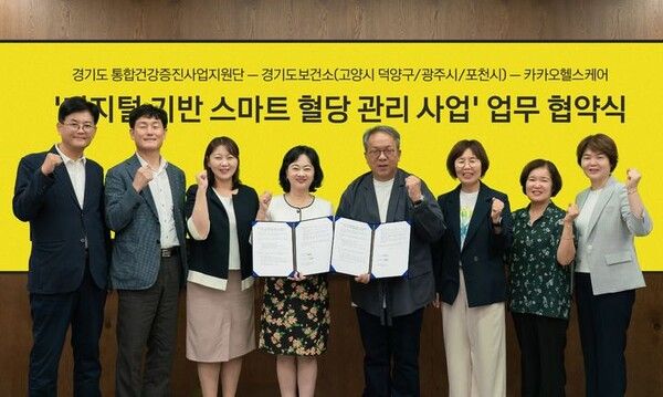 카카오헬스케어는 경기도 통합건강증진사업지원단, 광주시, 고양시 덕양구, 포천시 보건소와 디지털 기반 스마트 혈당관리사업 업무협약을 체결했다고 10일 밝혔다.