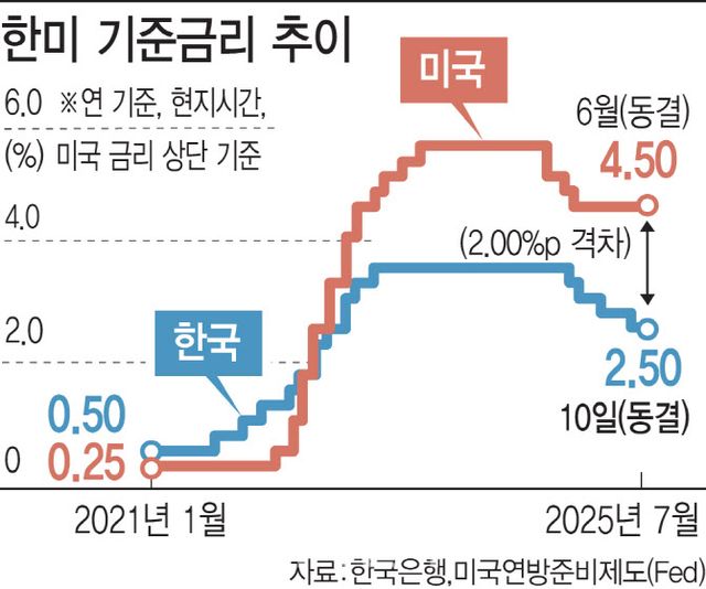 시장에선 추가 인하 시점을 두고 의견이 분분하다. 금통위 전까지만 해도 8월 인하 전망이 우세했으나 분위기가 다소 바뀐 것이다. 전문가들은 이번 동결이 일시적인 속도 조절이라고 해석하면서도, 가계부채에 대한 금통위의 경각심이 크고 미국과의 금리 차 확대 등도 부담 요인으로 작용할 것이라는 점을 들어 인하 시점이 늦춰질 수 있을 것으로 내다봤다.