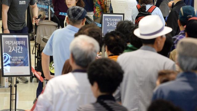 서울 잠실 제2롯데월드 아쿠아리움에서 관람객들이 줄을 서 입장을 기다리고 있다. / 뉴스1