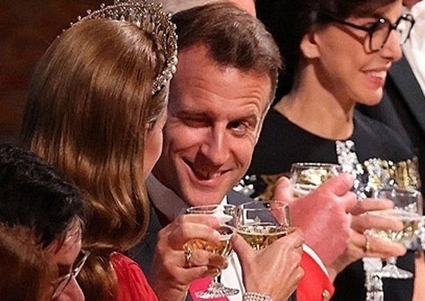마크롱 대통령은 참석자들의 술잔이 모두 채워진 후 미들턴 왕세자빈과 건배하며 그에게 윙크를 날렸다.