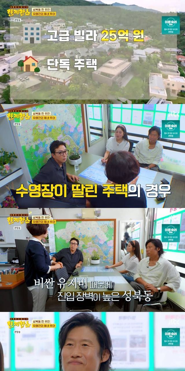 이날 탁재훈과 김희선, 유해진은 부동산에 들러 주변 시세를 둘러봤다. 부동산 중개인은 성북동 거래 가격에 대해 "고급 빌라는 25억, 단독주택은 45억 이상"이라고 이야기했다. 관리비를 묻자 "수영장 있는 집까지 보니까, 천만원 이상 들어간다. 가격이 문제가 아니라 유지비 때문에"라고 설명해 눈길을 끌었다.