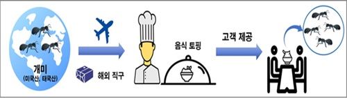 수사 결과 A씨는 2021년 4월부터 2024년 11월까지 미국과 태국에서 건조 상태의 개미 제품 2종을 국제우편(EMS) 등으로 반입한 뒤, 2021년 4월부터 2025년 1월까지 약 3년 9개월간 자신이 운영하는 음식점에서 판매하는 일부 요리에 ‘산미’를 더할 목적으로 3~5마리씩 얹어 제공하면서 약 1만 2,000회, 1억 2,000만 원 상당을 판매한 것으로 확인됐다.