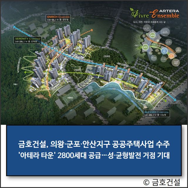 금호건설 관계자는 "금호건설 기술력과 사업관리 역량을 반영해 의왕군포안산 지구에 고품질 공공주택을 선보일 것"이라며 "이번 선정으로 민간참여 공공주택사업 분야 경쟁력을 다시 한번 입증할 수 있게 됐다"라고 전했다.