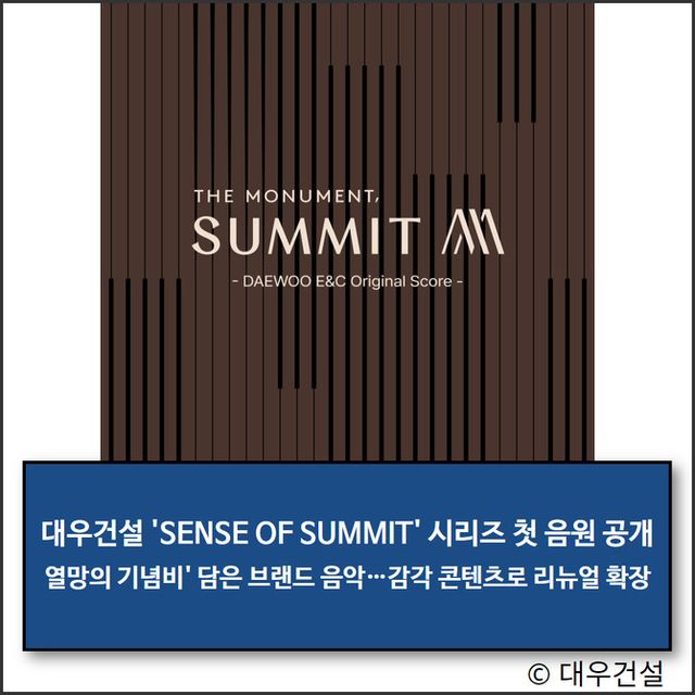대우건설 관계자는 "브랜드 음악은 써밋이 추구하는 철학을 감성적으로 전달할 수 있는 콘텐츠"라며 "다양한 감각을 통한 브랜드 경험을 지속 확장해 나갈 것"이라고 전했다.