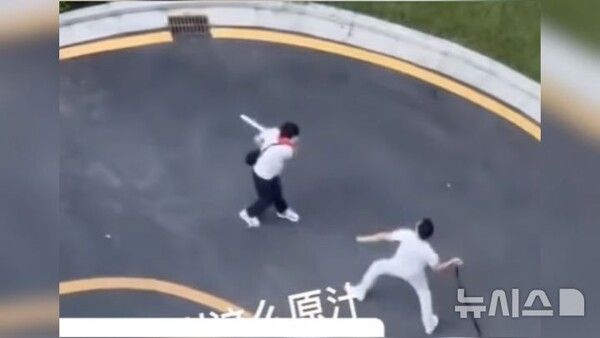 이 남성은 아들의 가방을 길가에 던지고 도로 한복판에서 벨트를 휘둘러 아들을 때렸다.