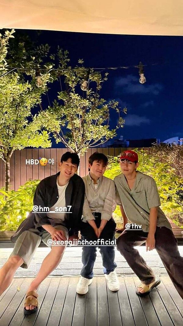뷔는 지난 7월 8일 자신의 인스타그램 스토리를 통해 "HBD야(Happy Birthday, 생일 축하해)"라는 글과 함께 한 장의 사진을 게재했다. 공개된 사진 속에는 뷔와 함께 축구선수 손흥민, 피아니스트 조성진이 환한 미소를 지으며 카메라를 응시하고 있는 모습이 담겼다.