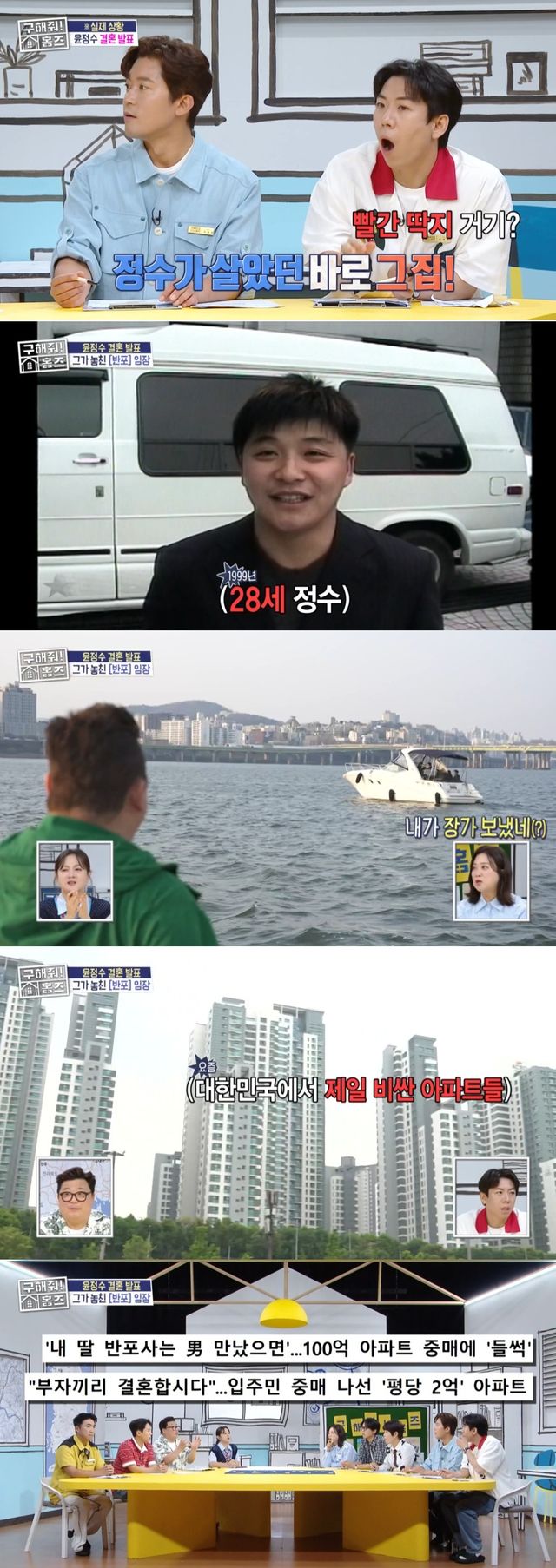 이어 윤정수는 "두 번째, 바로 뒤 아파트는 제가 놓친 반포아파트다. 저기가 요즘 제일 핫한 곳이다"라며 반포동 아파트들을 소개했다.