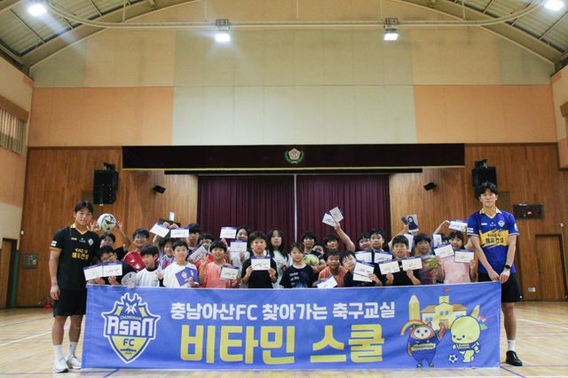 충남아산프로축구단(구단주 오세현, 대표이사 이준일, 이하 충남아산FC)은 지난 8일(화), 예산군에 위치한 신례원초등학교(이하 신례원초)에서 비타민 스쿨을 운영하며 유소년 축구 교육과 미래 팬층 확대에 나섰다.