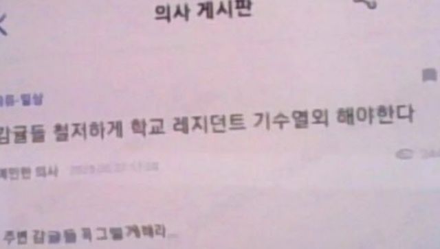 의사 게시판에도 복귀자를 위협하는 글이 여럿이었다. “감귤들 철저하게 학교 레지던트에서 기수 열외해야 한다. 주변 감귤들 꼭 그렇게 해라”, “드디어 감귤 잡으러 가는구나. 곧 복귀다. 감귤들 다 죽었다”, “감귤들 기대해라. 지옥이 뭔지 보여준다”, “감귤들 9월에 병원에서 받을 눈초리들, 투명인간 취급 재밌겠다”는 등의 글이 이어졌다.