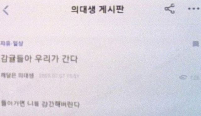 외부 유출된 게시글들을 보면 의대생 게시판에는 “감귤(복귀 학생들 비하 표현)들아 우리가 간다. 돌아가면 니들 강간해버린다”라는 내용의 글이 올라왔다. 또 “복귀하더라도 먼저 기어들어 간 감귤은 기수 열외시킨다. 다 너희들 때문에 이렇게 된 거다”라는 글도 있었다.