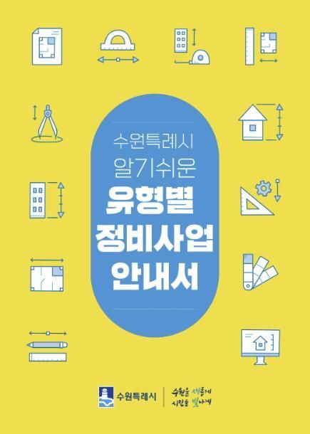 수원시가 제작한 '수원특례시 알기쉬운 유형별 정비사업 안내서'는 정비사업을 유형별로 분류해 사업 정의, 사업 기준, 추진 절차, 인센티브 등을 누구나 이해할 수 있도록 설명한다.