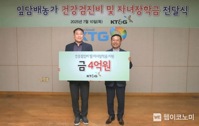 KT&G(사장 방경만)가 지난 10일 국내 잎담배 농가와 상생을 위해 복지증진 지원금 4억 원을 전달했다고 전했다.