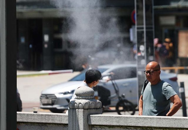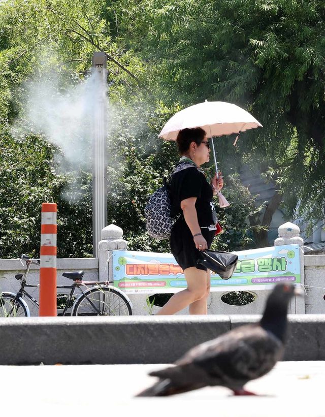 연일 폭염이 이어지고 있는 11일 경기 수원시 팔달구 지동교에서 쿨링포그가 가동되고 있다. / 뉴스1
