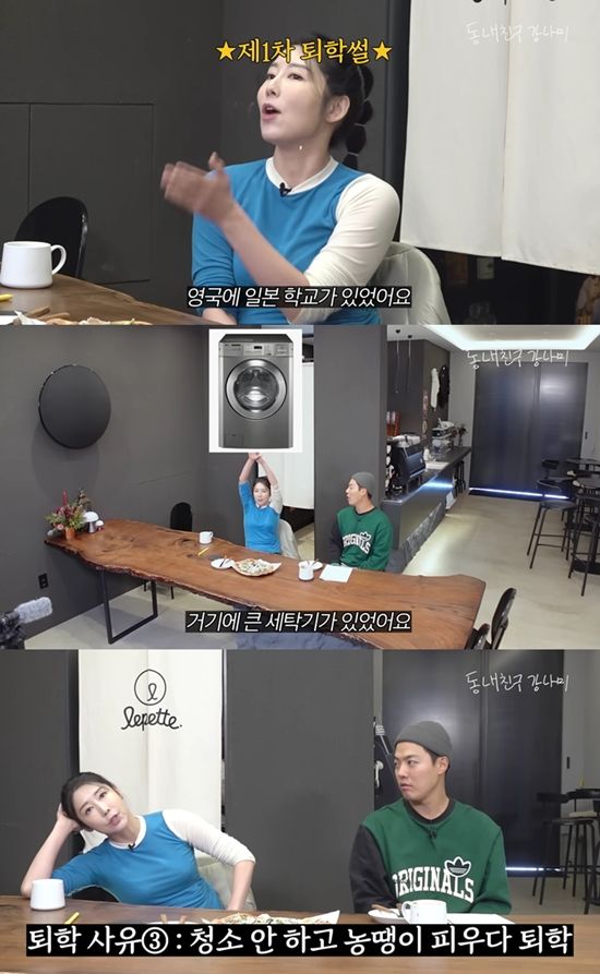 "청소해야 하는데 하는 척 하고 누워있기도 했다"라며 총 세 번의 퇴학 사유를 밝혀 웃음을 자아내기도 했다.