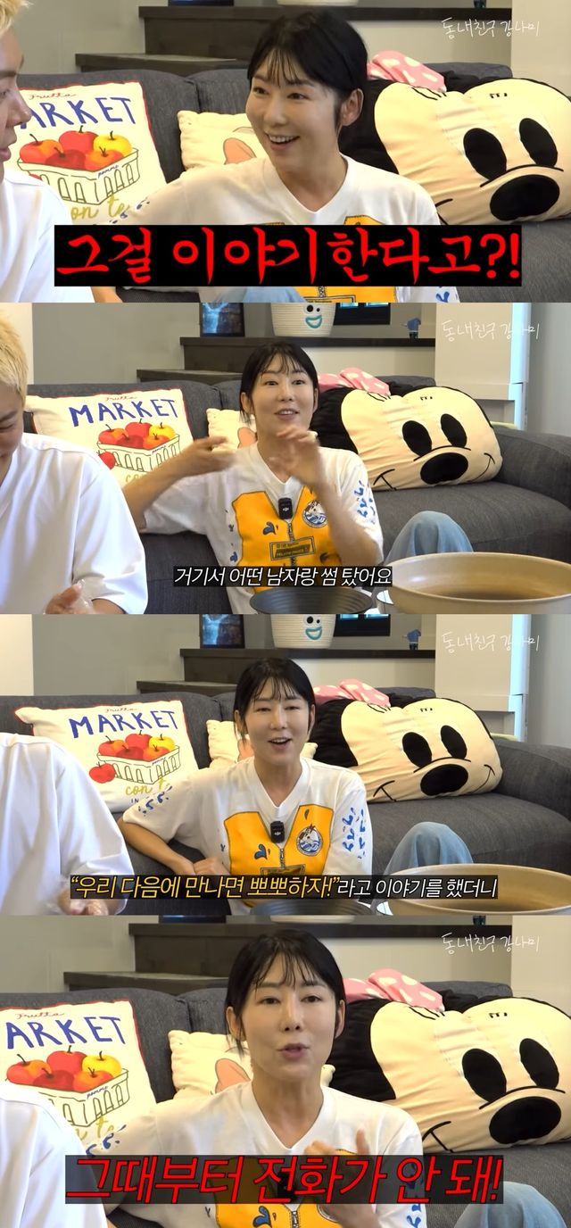 '미녀들의 수다' 할 때 어떤 남자 연예인과 썸을 탔다. 내가 '우리 다음에 만나면 뽀뽀하자'라고 했다. 그 다음부터 전화가 안 된다"며 과거 썸 경험을 털어놨다.