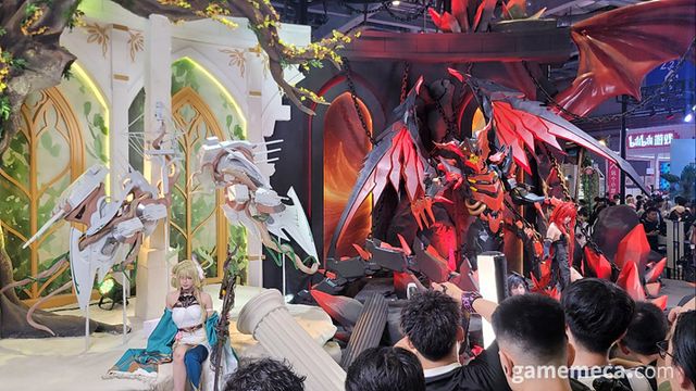 ▲ 출시가 얼마 남지 않은 명말: 공허의 깃털 부스에서는 (사진: 게임메카 촬영)