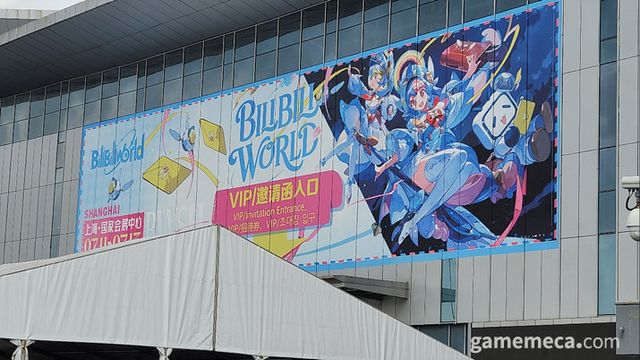 ▲ 건물 정중앙에 빌리빌리 월드 현수막이 장식되어 있다 (사진: 게임메카 촬영)