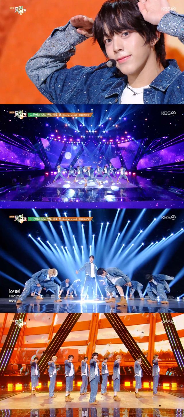 아홉(AHOF·스티븐, 서정우, 차웅기, 장슈아이보, 박한, 제이엘, 박주원, 즈언, 다이스케)은 11일 오후 방송된 KBS2 ‘뮤직뱅크’에 출연해 데뷔곡 ‘그곳에서 다시 만나기로 해 (Rendezvous)’로 1위 트로피를 품에 안았다.