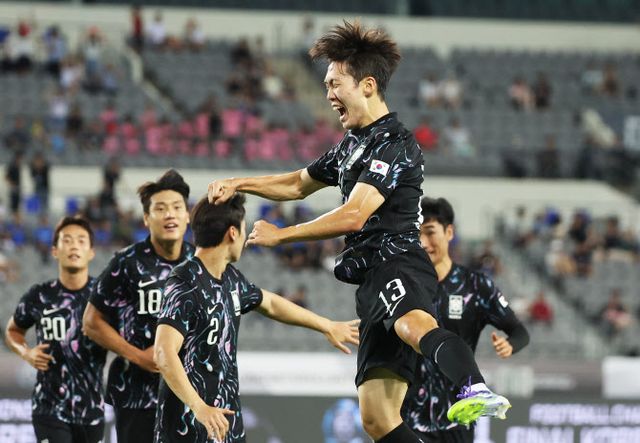 이날 한국은 3-4-3 전형으로 나섰다. 최전방에 이호재(포항 스틸러스)와 나상호(마치다 젤비아), 강상윤(전북 현대)이 호흡을 맞췄고 허리에는 조현택(울산HD), 서민우(강원FC), 이승원(김천 상무), 김태현(전북)이 자리했다. 백스리는 김태현(가시마 앤틀러스), 변준수(광주FC), 서명관(울산)이 구축했고 골키퍼 장갑은 이창근(대전하나시티즌)이 꼈다.