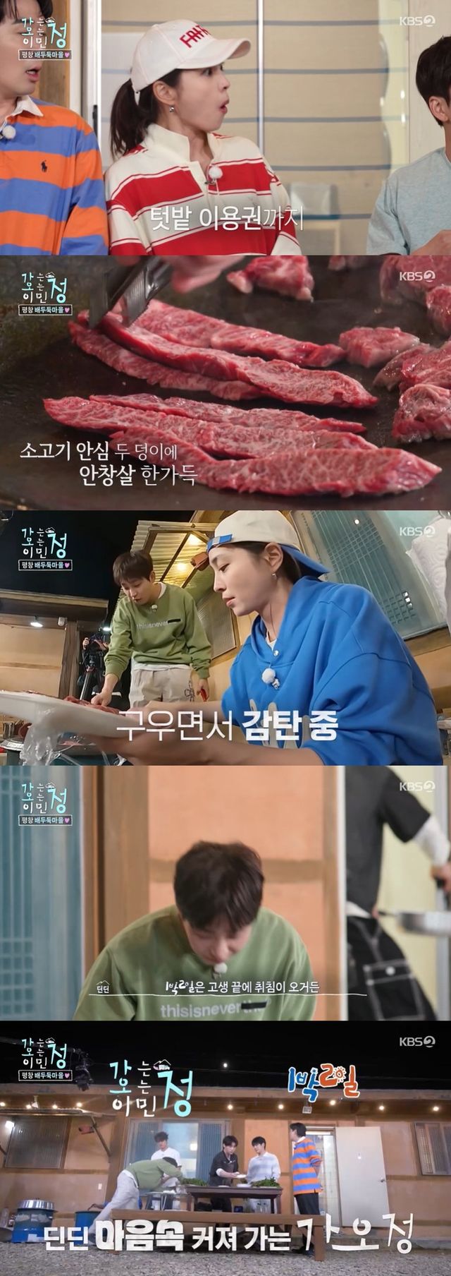 정남매와 딘딘은 어느 때보다 신중하게 불 온도를 맞춘 뒤 안심과 안창살부터 굽기 시작했다.