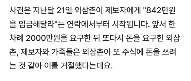 은퇴후 주식으로 노후자금 마련할려는 외삼촌이 2천만원 달라고함.