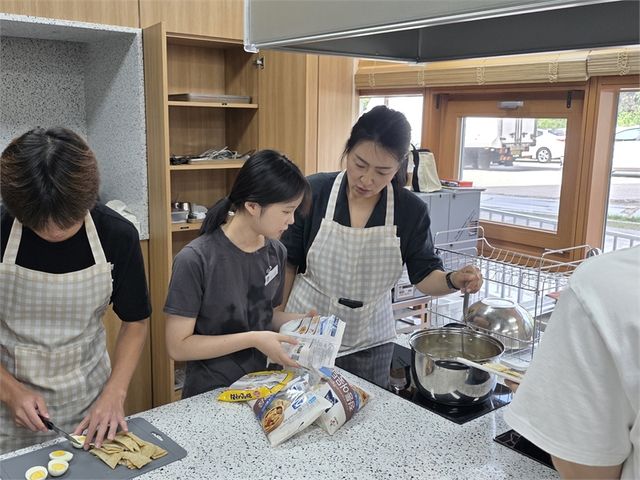 군포시의회 ‘Happy Together 2’에 참여한 청소년들이 요리 활동을 통해 자연스럽게 소통하는 시간을 보내고 있다.(사진=뉴스영)