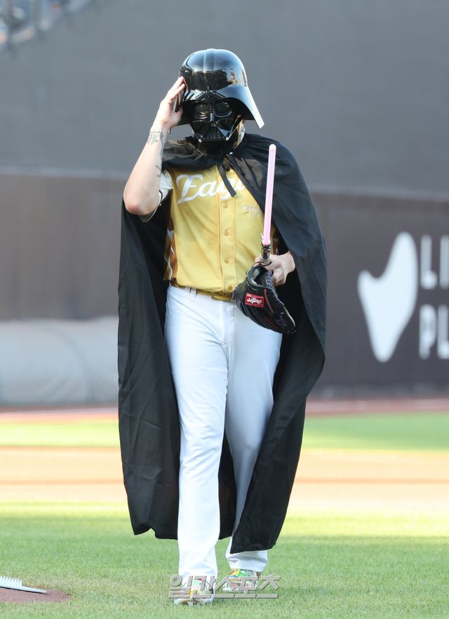 나눔 올스타 선발 투수로 등판한 코디 폰세(한화 이글스)는 1이닝의 짧은 시간에 많은 퍼포먼스를 보여줬다. 영화 '스타워즈' 광팬인 그는 다스베이더 가면과 망토, 광선검을 장착해 마운드에 올랐고, '류현진 팬'답게 마운드에선 토론토 블루제이스 류현진 유니폼을 입고 '왼손으로' 공을 던져 환호를 이끌었다.