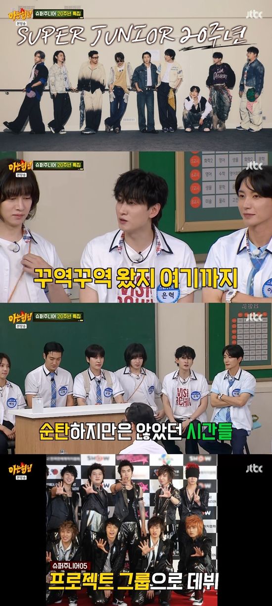 이수근은 "솔직히 20주년까지 올 거라 예상하기 어려웠을 것 같다"라며 감탄했다. 은혁은 "우리는 어떻게 보면 여기까지 순탄하게 왔다기보다 꾸역꾸역 왔다. 데뷔할 때만 해도 '슈퍼주니어05'라고 프로젝트 그룹이었다. 멤버가 바뀌거나 졸업을 하는 시스템이었다"라며 데뷔 뒷 얘기를 공개했다.