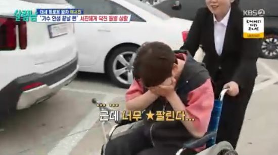 12일 방송된 KBS 2TV '살림하는 남자들 시즌2'에서는 박서진이 휠체어를 타고 화장실로 향하는 모습이 전파를 탔다.
