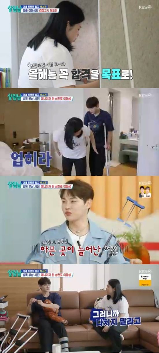 발목부상으로 목발을 짚고 있는 박서진은 동생의 케어를 거부했다. 박효정은 어떻게든 오빠를 도와주려고 했다.
