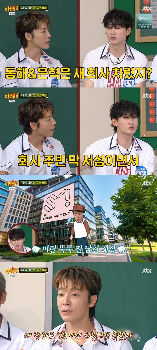 강호동은 "동해 많이 울었냐"라고 동해와 함께 회사를 설립한 은혁에게 물었다. 은혁은 "사실 우리가 SM을 아예 나갔다기보다 지금처럼 같이 할 때는 같이 하는데, 동해는 아예 떨어졌다고 생각했는지 몇 달 동안 회사 주변을 서성이면서 울었다고 하더라"라고 답했다.