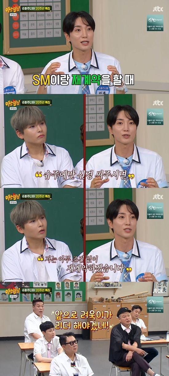 이특이 "우리가 SM이랑 재계약 할 때 사무실 얘기를 듣는다. 려욱이는 다른 조건 아무것도 안 대고 '슈주 다 같이할 수 있게 계약, 1년에 한 번 앨범, 슈주에 신경 써주시면 저는 아무 조건 없이 재계약하겠다'라고 했다더라"라며 려욱의 재계약 조건을 밝혔다.