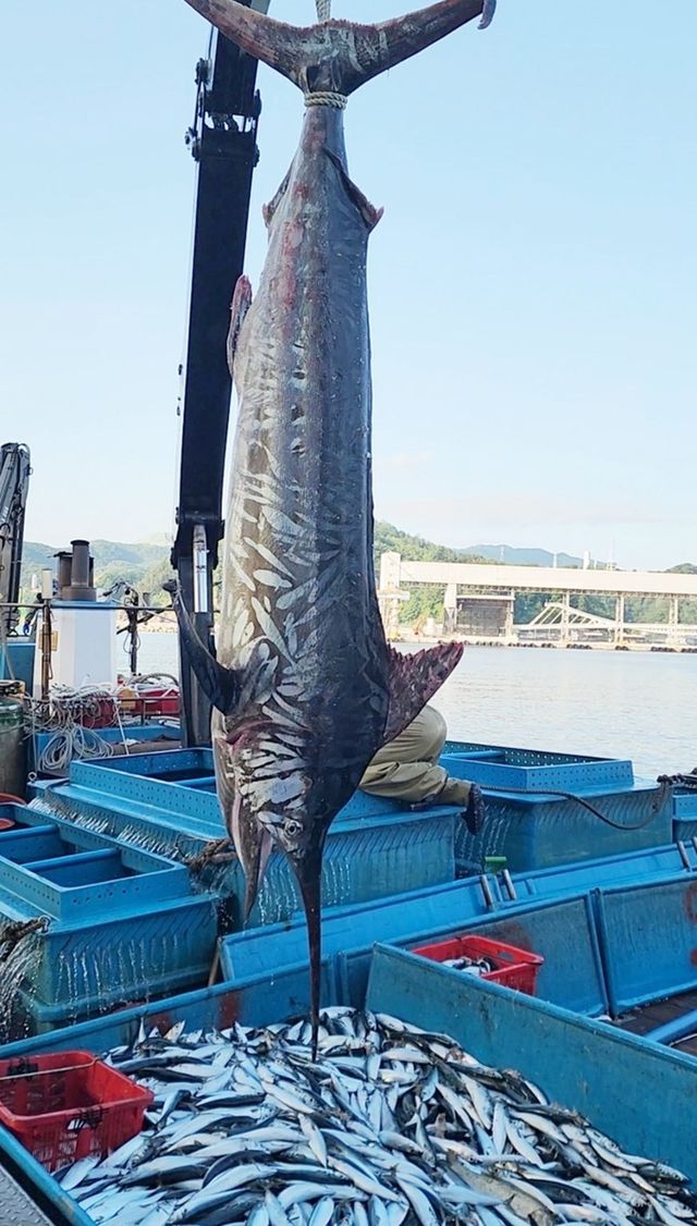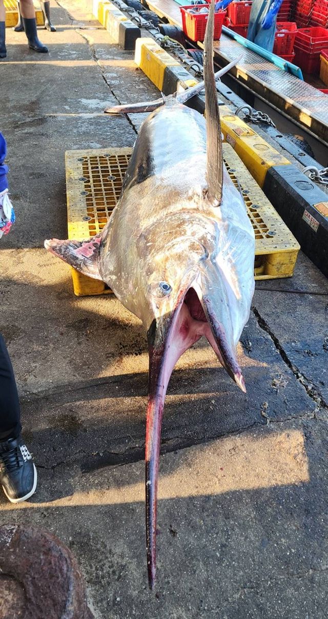 연합뉴스 보도에 따르면 이날 새벽 잡힌 황새치는 길이 3m, 무게 226㎏에 이르는 거대한 크기였다. 이번에 잡힌 황새치는 6만 원에 위판된 것으로 전해졌다.