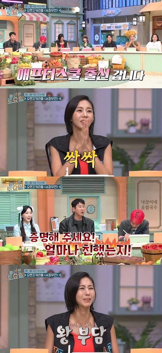 붐이 "(유이 씨와) 같은 멤버였다. 아마 첫 앨범은 멤버들끼리 계속 들었을 거다"라고 말하고, 신동엽이 "증명해달라. 얼마나 친했는지, 얼마나 사랑했는지"라며 부담을 주자, 유이는 두 손을 빌며 울상을 지었다.