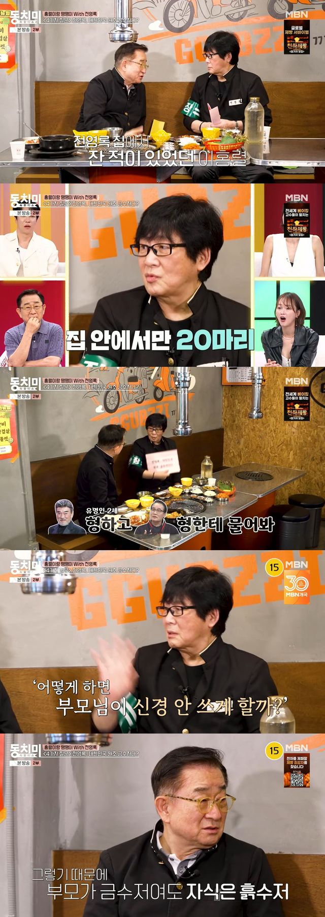 이에 전영록은 "60마리다. 마당에 30~40마리 있고, 안에도 있었다"고 답했고, 이홍렬은 "사료값만 해도 얼마냐"며 "60마리를 키웠으면 금수저지"라고 반응했다.