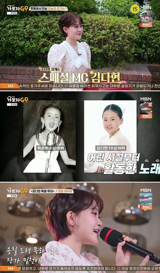 12일 방송된 MBN 예능 프로그램 ‘가보자GO’(가보자고) 시즌5 하춘화 편에 스페셜 MC로 출연한 김다현은 MC 안정환, 홍현희와 가요계 대선배 하춘화와 남다른 케미를 선보이며 시청자 이목을 사로잡았다.
