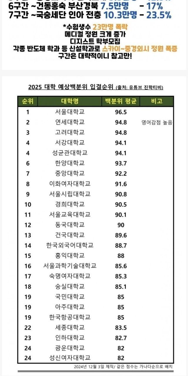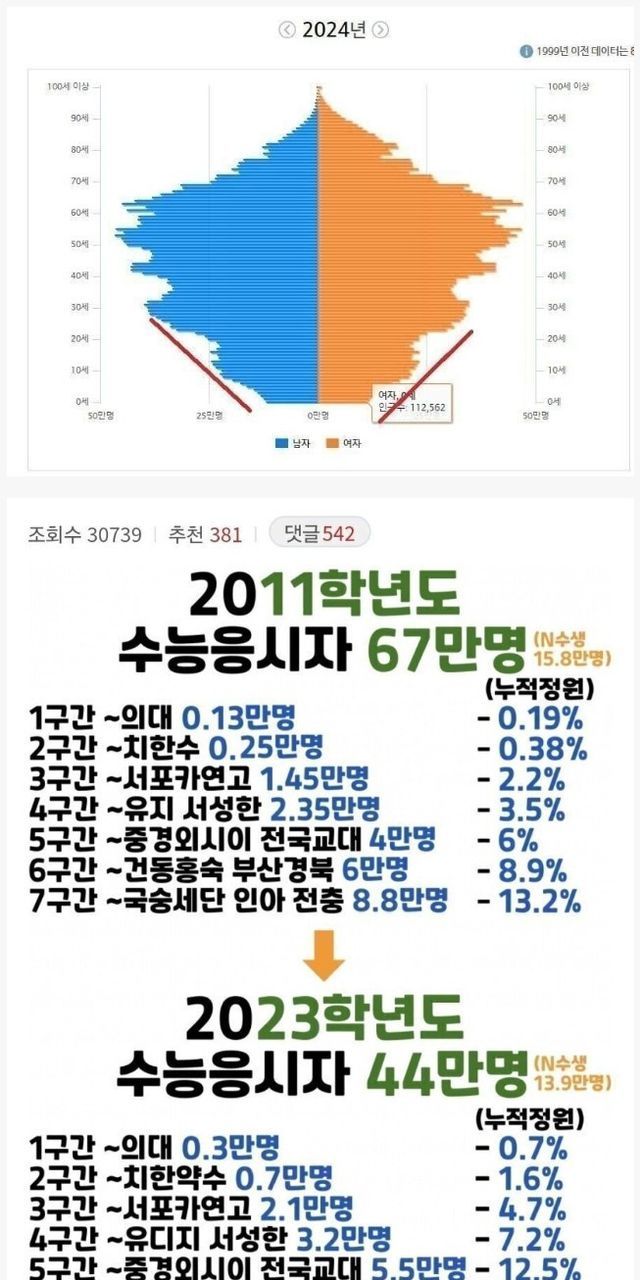 괜찮은 대학 정원은 오히려 50%가량 늘어났으니..