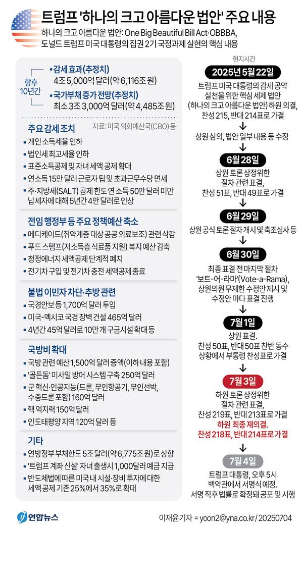 트럼프 대통령의 초대형 예산법안은 올해 경제성장률을 0.2%포인트, 내년 0.3%포인트 끌어올릴 것으로 예상된다.