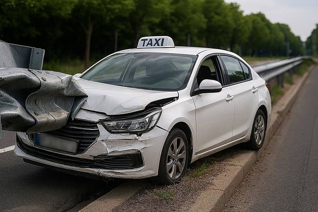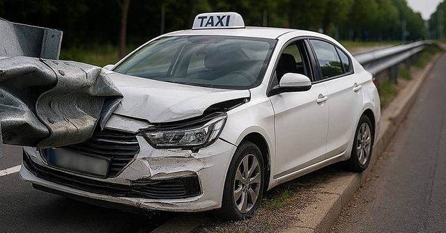 택시는 인도 바깥쪽 울타리를 들이받은 뒤 5m 아래 도로로 추락해 멈춰 섰다.