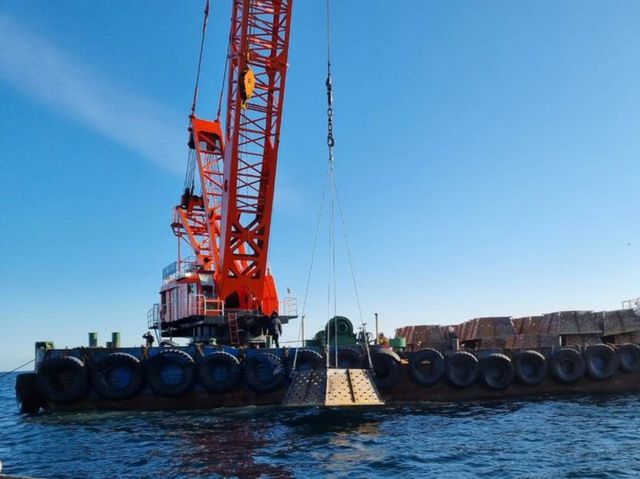 양양군이 해양자원 특화 전략의 일환으로 현남면 동산리 및 인구리 연안에서 해삼전용초 설치를 실시하고 있다. / 양양군 제공