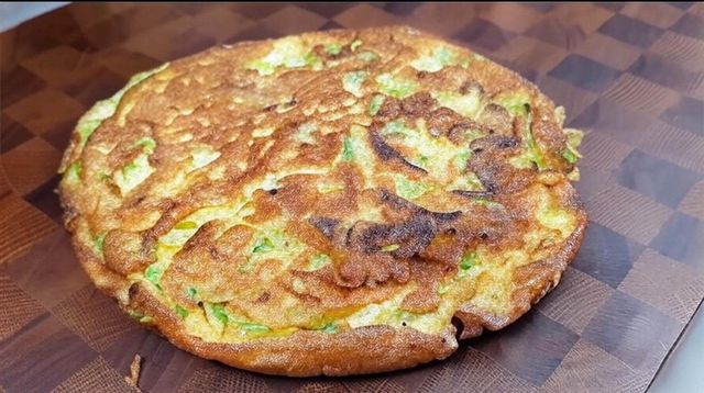 팬은 작은 사이즈를 사용하는 것이 좋다. 작은 팬을 사용하면 부침이 너무 얇지 않고 예쁜 모양으로 완성된다. 팬에 식용유를 넉넉히 두르고 충분히 뜨겁게 달군다. 기름의 온도가 충분히 올라왔을 때 계란물을 부어 중약불에서 익힌다. 뚜껑을 덮어 윗부분도 잘 익도록 2분 정도 기다린다. 계란에서 고소한 향이 올라오고 바닥이 갈색으로 잘 익었으면 조심스럽게 뒤집는다. 뒤집은 후에도 뚜껑을 덮고 2분 정도 더 익힌다. 앞면과 뒷면이 노릇노릇해졌는지 확인한 뒤 불을 끄고 도마에 올려 식힌다. 부스러지지 않도록 한 김 식힌 후 먹기 좋은 크기로 자르면 완성할 수 있다.
