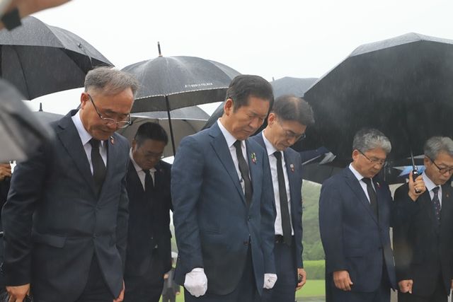 정 후보는 방명록에 '국가가 잊지 않고 영령들의 고귀한 뜻을 이어 가겠다'고 남겼다.