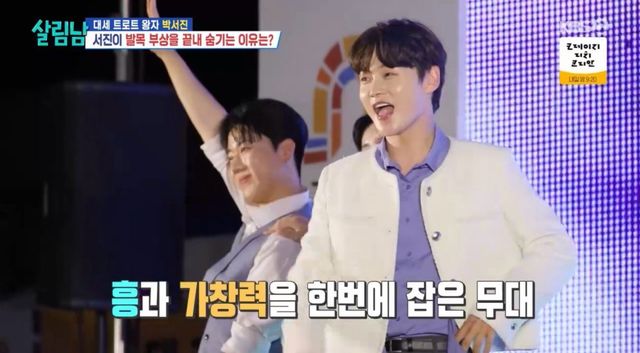 ‘살림남’ 본방사수까지 알차게 홍보를 마친 박서진은 다음 행사장으로 이동했다. 이번에도 역시 찰진 멘트와 장구의 신 다운 완벽한 무대로 유려하게 행사를 뒤흔들었다. 무대 내내 옆에서 케어해준 효정에게 감동한 박서진은 소원을 들어주겠다고 제안했고 생일을 챙겨주기로 했다.