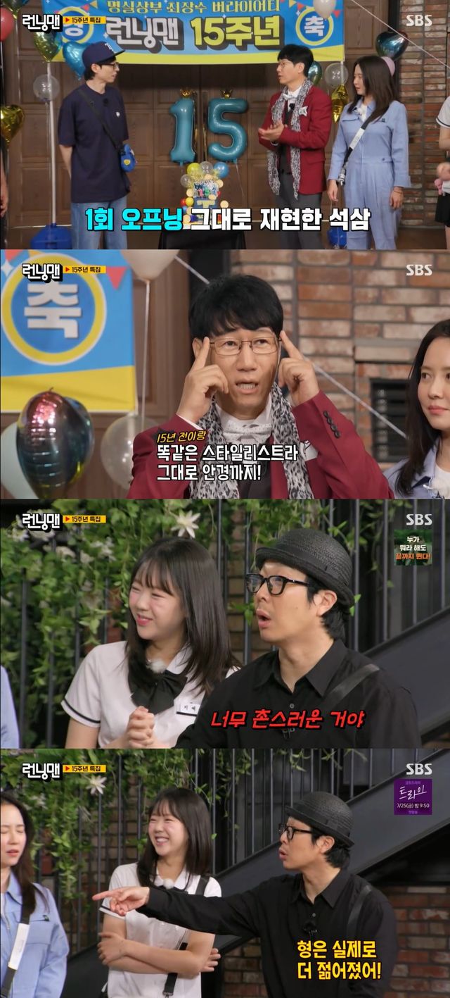 (엑스포츠뉴스 우선미 기자) 지석진이 15년 전 첫 방송 의상을 그대로 재현했다.