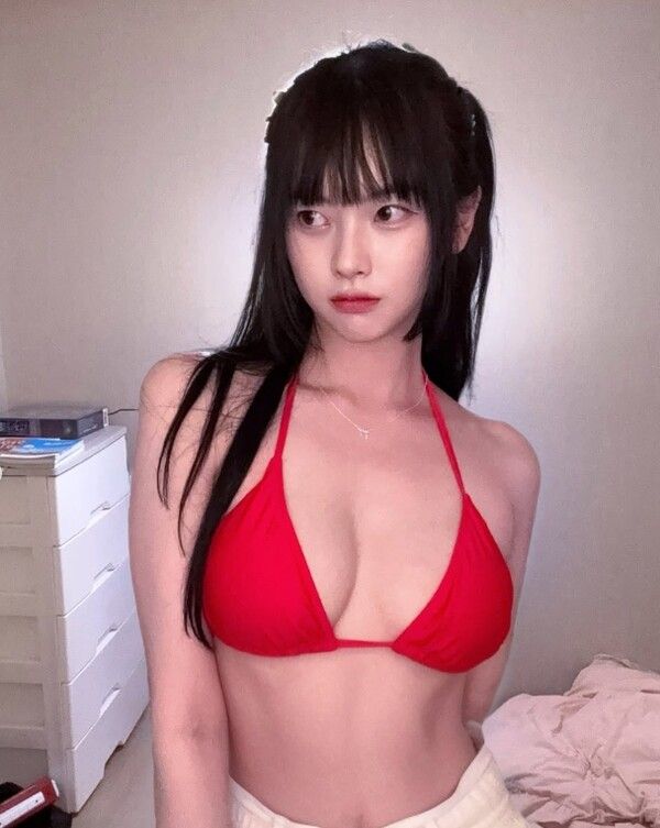 공개된 사진 속 고말숙은 자신의 방을 배경으로 한 자연스러운 셀카를 연출했다. 특히 선명한 붉은색 비키니는 실내의 은은한 조명과 어우러져 상반된 분위기를 자아냈으며, 긴 흑발을 양 갈래로 묶은 모습은 발랄함과 함께 성숙한 분위기를 동시에 전달해 시선을 사로잡았다.