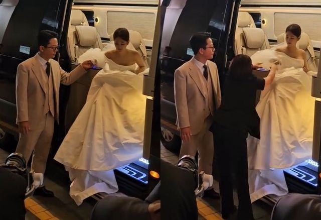 본식 약 3시간 전부터 웨딩드레스를 입은 새신부 김지민과 수트를 차려 입은 김준호가 모습을 드러냈다. 김준호가 차에서 내리는 김지민을 에스코트하는 모습이 공개돼 달달함을 자아내기도 했다.