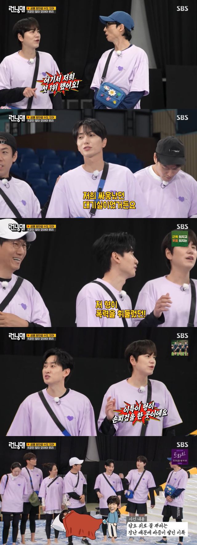 이에 은혁은 "정확히는 싸움이 아니라 저 형이 폭력을 휘둘렀던 데다"라며 이특을 가리켰고, 규현 역시 "폭력이 아니라 이특이 형이 손찌검을 한 곳이다"라고 거들었다.